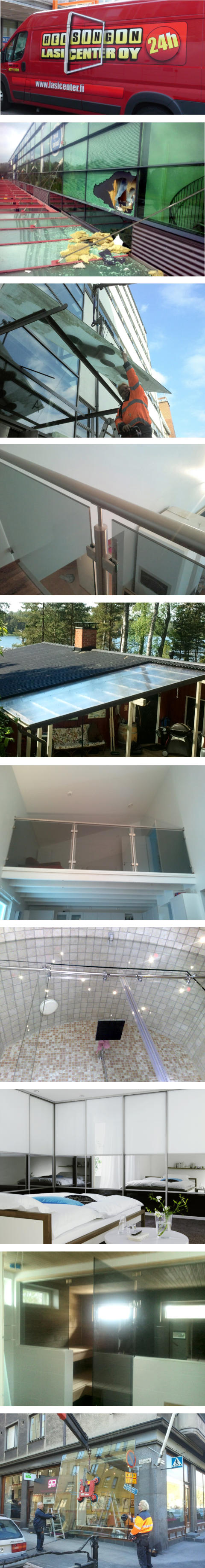 Meiltä saat kattavat palvelut- nopeat päivystys- ja korjaus- lasituspalvelut 24/7- mittauspalvelut ja hintatarjoukset- urakkatyötarjoukset- suunnittelupalvelut yhdessä asiakkaan/arkkitehdin kanssa- Kabinetti liukuovet